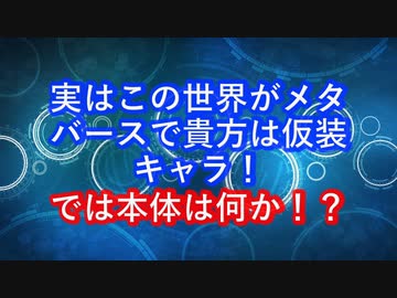 実はこの世界がメタバースであなたは仮想キャラ!ではこのメタバース世界の外にいるあなたの本体とは何か!