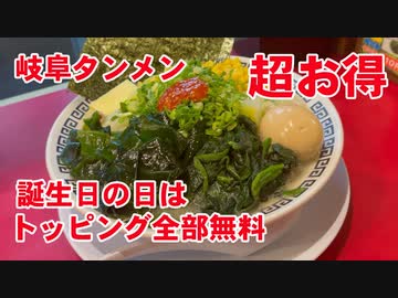 誕生日の日に岐阜タンメンに行くとトッピングが全部無料でお得です!