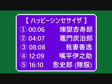5曲連続で【 ハッピーシンセサイザ 】 ① 煉獄杏寿郎 ② 竈門炭治郎 ③ 我妻善逸 ④ 嘴平伊之助 ⑤ 愈史郎 (隊服) 【 鬼滅のMMD 】