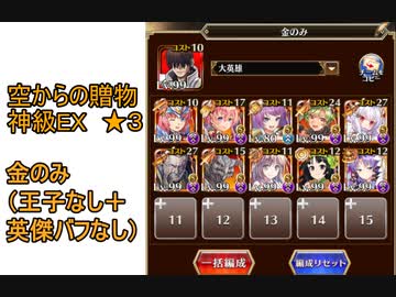 千年戦争アイギス 曜日ミッション 空からの贈物 神級EX 金のみ(王子なし+英傑バフなし)(2022/5/12)