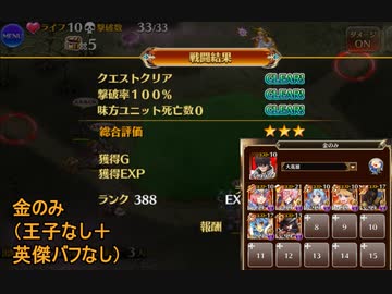 千年戦争アイギス 曜日ミッション 黄金の鎧 神級EX 金のみ(王子なし+英傑バフなし)(2022/5/13)