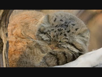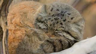 騒々しいカラスがマヌルネコの睡眠を妨げています