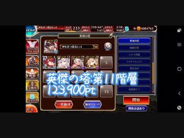 【千年戦争アイギス】英傑の塔:第11階層(星3クリア)【123,900pt】