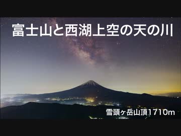 富士山と西湖上空の星空タイムラプス