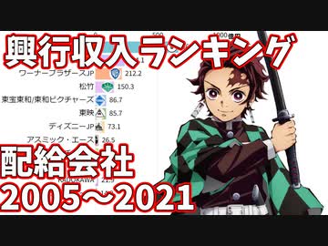 映画年間興行収入・配給会社別ランキング 2005~2021【東宝】