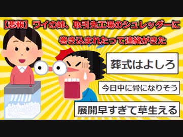 【悲報】ワイの姉、取引先工場のシュレッダーに巻き込まれたって連絡がきた【2ch面白い感動スレ】