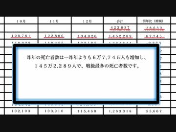 【厚労省・人口動態統計】月別の死亡者数まとめ。