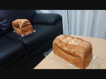 柴犬の食パンの前で食パンをなでなでしてみた