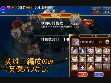 千年戦争アイギス 大討伐ミッション 魔物の棲む島 神級EX 英雄王編成のみ(ノ英傑+ノシェフ)(約75からレオラ放置)