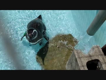 水飛沫を浴びるペンギンさん@姫路市立動物園20220506