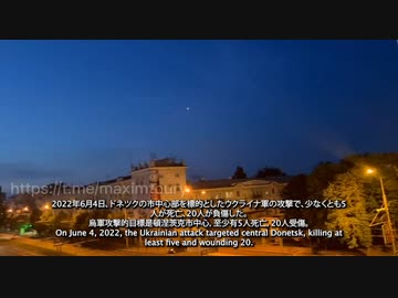 2022年6月4日、ドネツクの市中心部を標的としたウクライナ軍の攻撃で、少なくとも5人が死亡、20人が負傷