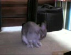 机の下でたたずむうさぎ (ネザーランドドワーフ)