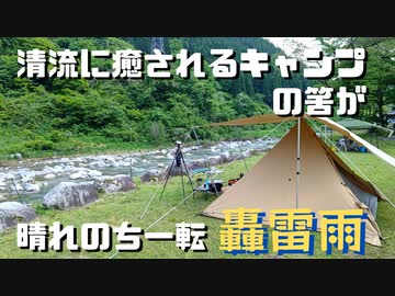 清流に癒されるキャンプの筈が、晴れのち一転轟雷雨!