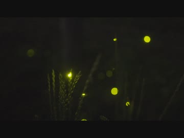 【星空の景色】田舎道の蛍と星空、薄っすら天の川