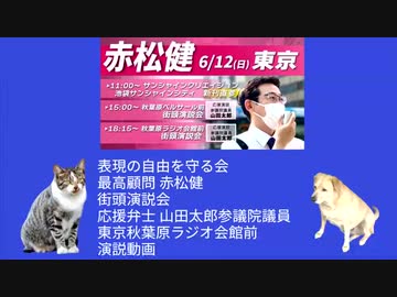 表現の自由を守る会最高顧問赤松健氏東京秋葉原ラジオ会館前街頭演説会。前座の表現の自由を守る会会長 山田太郎参議院議員議員演説動画(360p減力版)