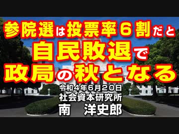 参院選は投票率6割だと自民敗退で政局の秋となる 6-20-2022
