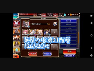 【千年戦争アイギス】英傑の塔:第21階層(星3クリア)【126,420pt】
