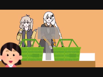 レジ打ちする紲星あかりとその横でおどる春日部つむぎ