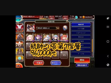 【千年戦争アイギス】統帥の塔:第7階層(星3クリア)【96,000pt】