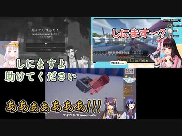 【Minecraft】トロッコに乗った夜見れなを頭に乗せたまま溺死する花畑チャイカ【にじさんじ切り抜き/にじさんじサマープール】