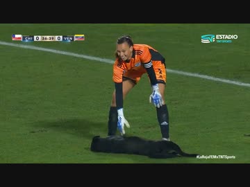 チリの女子サッカーの試合に乱入した黒わんこ