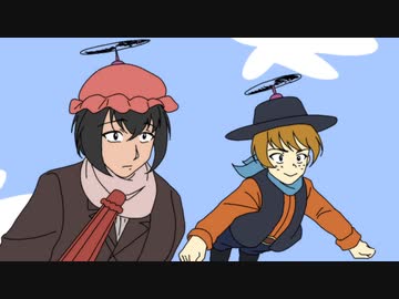 【手描き】擬人化ガンとゴン「空中戦」