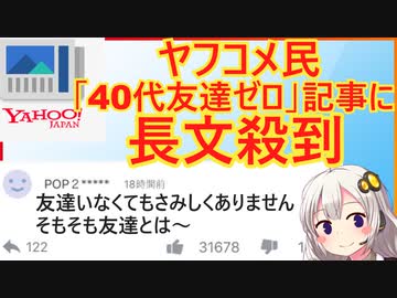 ヤフコメ民、なぜか「40代独身友達ゼロ」という記事に超反応してしまう