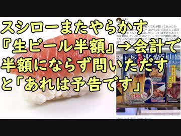 スシローまたやらかす『生ビール半額』→会計で半額にならず問いただすと「あれは予告です」