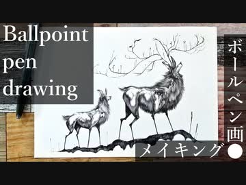 【ボールペン画メイキング】枝鹿 - その4 -【Ballpoint pen drawing】