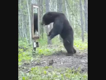 ホモと見る 生まれて初めて鏡を目にした熊の反応
