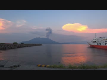ある日の桜島(その336)<噴煙を上げる桜島と夕焼け雲を早送りで>