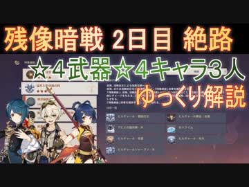 [ゆっくり解説] 残像暗戦2日目絶路 ☆4武器☆4キャラ3人で [原神]