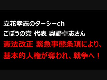 立花孝志のターシーch ごぼうの党 代表 奥野卓志さん #憲法改正 #緊急事態条項 により、基本的人権が奪われ、戦争へ!