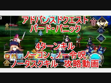 【FGO】2022 アドバンスドクエスト バード・パニック ノーコン、ノー令呪、タスクキル無し 4ターン攻略動画