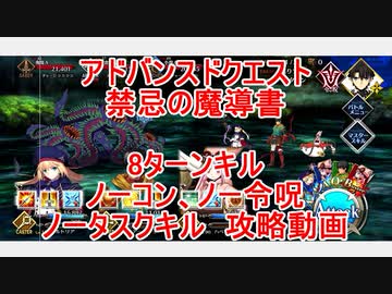 【FGO】2022 アドバンスドクエスト 禁忌の魔導書 ノーコン、ノー令呪、タスクキル無し 8ターン攻略動画