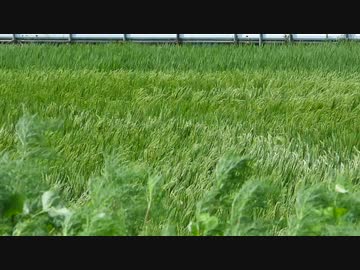 田んぼ。強風で揺れる若い稲【フリー素材あそび】