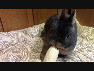 【うさぎ】初めてのバナナ【毛玉】