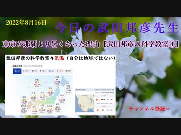 2022年8月16日 火曜日 東京が那覇より暑くなった理由【武田邦彦の科学教室④】
