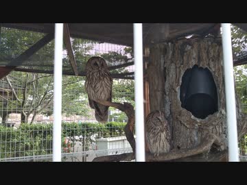 昼間のフクロウ眠そう