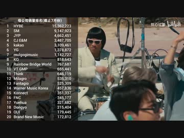 CIRCLE(旧GAON) 2022年KPOPエンターテインメント別音盤売上TOP20 (7月31日現在)