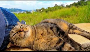 海の見える丘の上のベンチに座っていたら野良猫が隣に座ってきて癒される