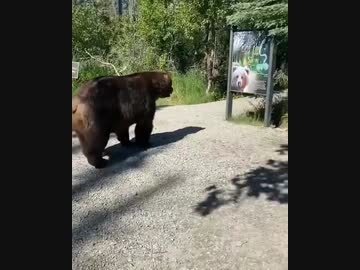 ホモと見るクマ注意の看板を見て逃げるクマ