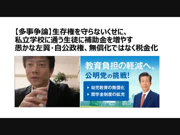 【多事争論】生存権を守らないくせに、私立学校に通う生徒に補助金を増やす愚かな自公政権 社会主義化を推進し自由を奪う税金無駄遣い自公政権