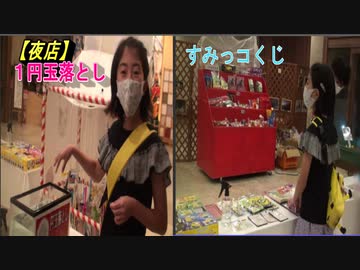 【夜店:イベント】1円玉落とし、すみっコくじに挑戦するあい❤母は1円玉1枚を入れ物に入れる事に成功しました♬
