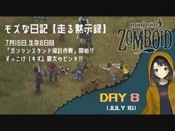 【Project Zomboid】走る黙示録 生存8日目☆ガソリンスタンド掃討作戦開始‼ ずっこけ「もず」最大のピンチ(><) MOZU game's