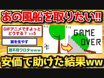 【2ch面白いスレ】棒人間が木の枝に引っかかった風船を取りたいようですwww【安価お絵描き】