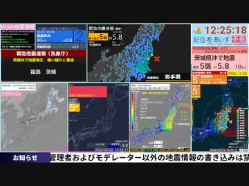 【緊急地震速報(警報)】「茨城県沖」(最大震度5-・2022年05月22日 12時24分発生)