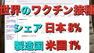 世界のワクチン接種シェア 日本 8% 製造国 米国 1% (現在の日ごと)