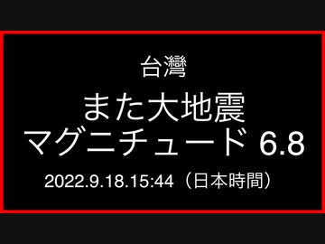 台灣で再び大地震;マグニチュード 6.8;震源の深さ7km;2022.9.18.15:44(日本時間)