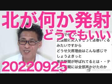 北がなんかを発射したけど全然話題にならず/世間「蓮舫が政策語ってるの見たことが無い」/東京新聞国葬拒否、あー来なくていいお前らは20220925